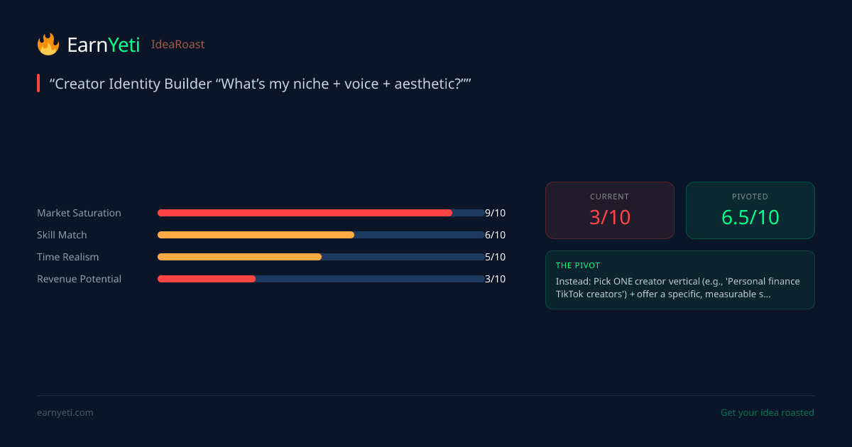 "You've just described every $47 Notion template and LinkedIn guru's entire business model—except you haven't specified what makes yours different or why creators should pay you instead of asking ChatGPT for 30 seconds. This is the side hustle equivalent of selling 'business advice': everyone thinks they have it, nobody wants to buy it."