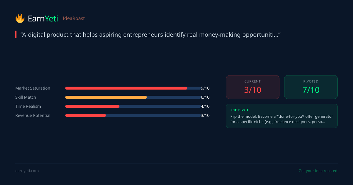 "You're selling a $19 digital product that promises results 'in days' to people who've already bought a hundred other $19 products promising the same thing. This isn't a side hustle—it's a motivational poster with checkout."